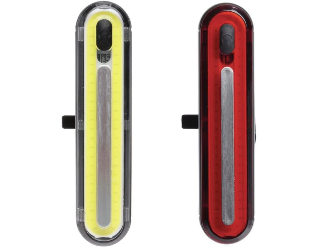 ABUS Gemini lygtesættet er skabt til cyklister, der ønsker maksimal synlighed og moderne funktionalitet i et stilrent og kompakt design. Sættet består af en forlygte med 240 lumen og en baglygte med 100 lumen, begge udstyret med 50 COB LED’er, som sikrer en bred og jævn lysspredning – ideelt til både bykørsel og mørke landeveje.